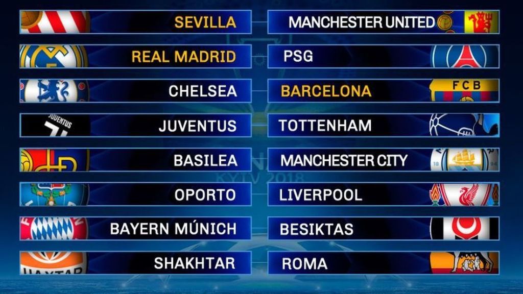 Real Madrid, Barcelona y Sevilla tendrán que mostrar su mejor versión para estar en los cuartos de final de la Champions League. Con el Atlético ya eliminado, los tres representantes del fútbol español en la máxima competición continental han quedado emparejados en el sorteo de octavos con rivales de alto nivel: el PSG para el Real Madrid, el Chelsea para el Barcelona y el Manchester United para el Sevilla.